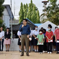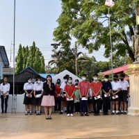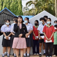 ซึ่งศิษย์เก่า ทั้ง 2 คน ได้พบปะกับน้องๆ นักเรียนที่ได้เสาธง พร้อมเล่าประสบการณ์ที่ได้หลังจากจบการศึกษาจากโรงเรียนจุมจังพลังราษฎร์