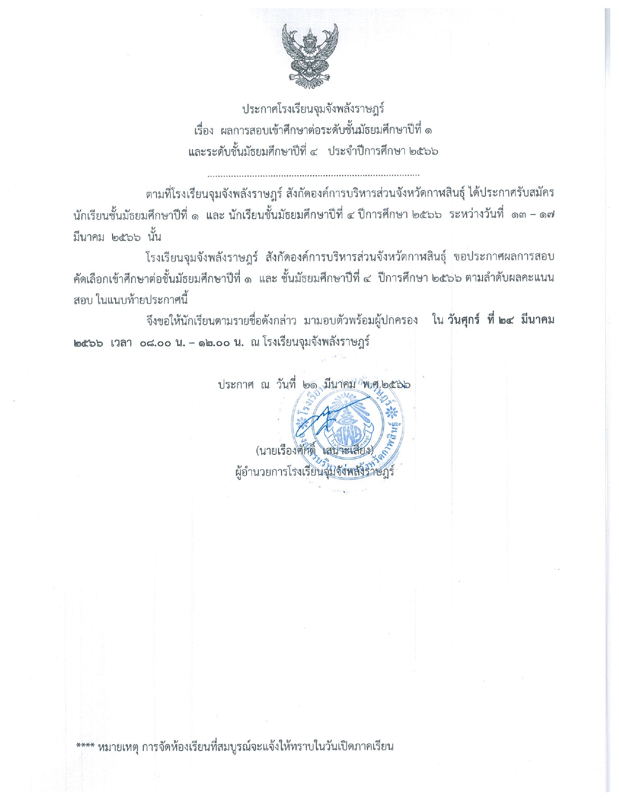 ประกาศโรงเรียนจุมจังพลังราษฎร์