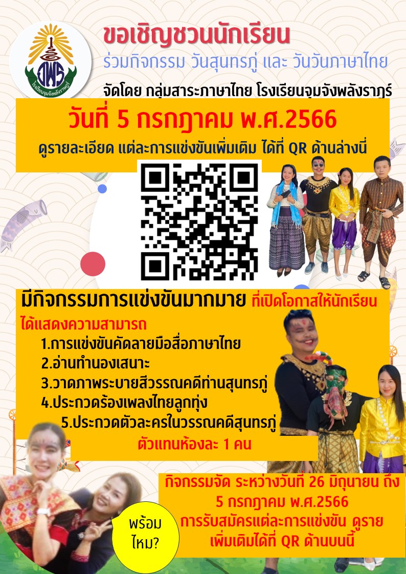 ขอเชิญชวนร่วมกิจกรรม วันสุนทรภู่ และ วันภาษาไทย ปีการศึกษา 2566
