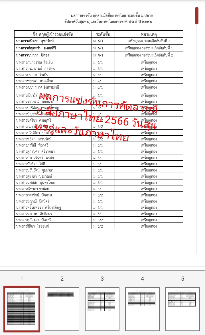 ผลการแข่งขันคัดลายมือ และผลการแข่งขันประกวดวาดภา (กิจกรรมสัปดาห์วันสุนทรภู่และวันภาษาไทยแห่งชาติ ประจำปี 2566)