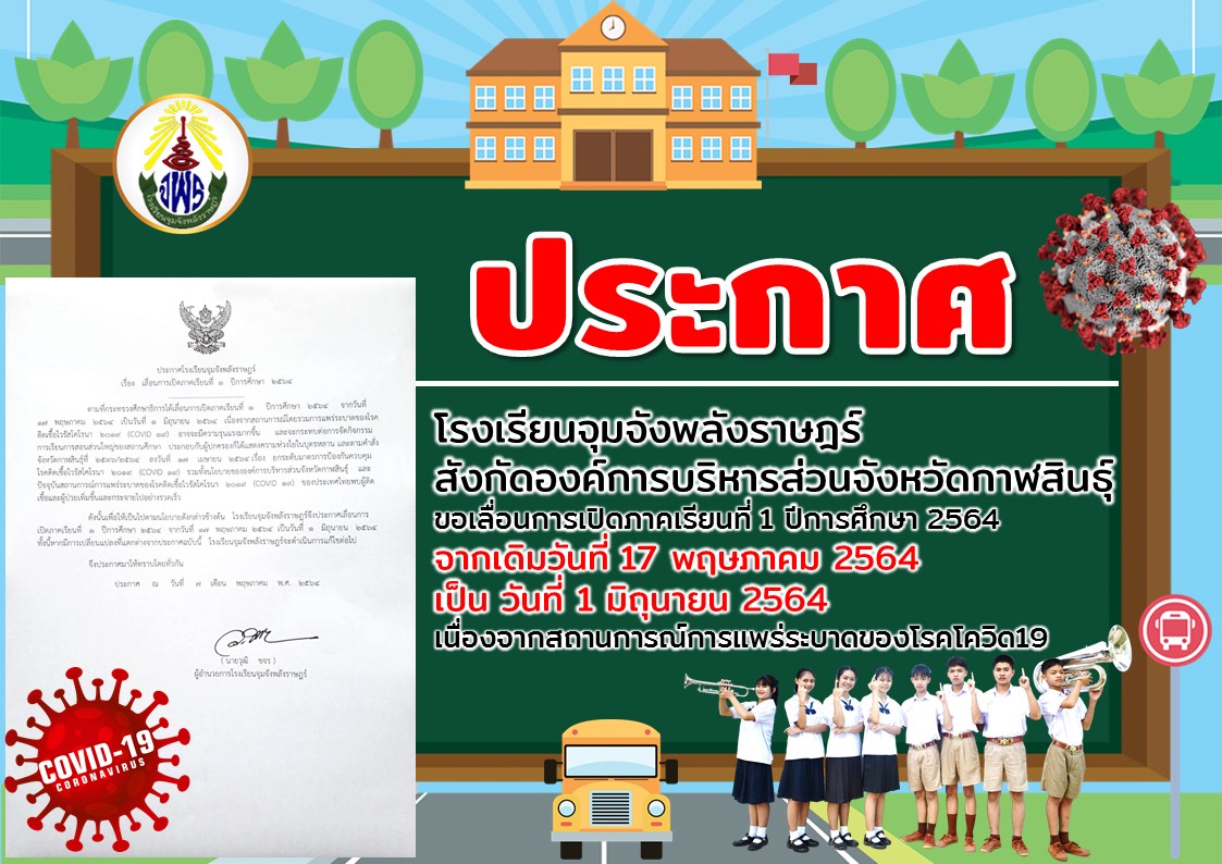 ตามที่กระทรวงศึกษาธิการได้เลื่อนการเปิดภาคเรียนที่ 1 ปีการศึกษา 2564 จากวันที่ 17 พฤษภาคม 2564 เป็นวันที่ 1 มิถุนายน 2564 แต่เนื่องจากสถานการณ์โดยรวมของการแพร่ระบาดของโรคติดเชื้อไวรัสโคโรนา 2019 (COVID-19) มีความรุนแรงมากขึ้น จึงอาจจะทำให้กระทบต่อการจัดกิจกรรมการเรียนการสอนส่วนใหญ่ของสถานศึกษา ประกอบกับผู้ปกครองก็ได้แสดงความห่วงใยในบุตรหลาน และตามคำสั่งจังหวัดกาฬสินธุ์ที่ 2546/2564 ลงวันที่ 17 เมษายน 2564 เรื่องยกระดับมาตรการป้องกันควบคุมโรคติดเชื้อไวรัสโคโรนา 2019 (COVID-19) รวมทั้งนโยบายขององค์การบริหารส่วนจังหวัดกาฬสินธุ์ และปัจจุบันสถานการณ์การแพร่ระบาดของโรคติดเชื้อไวรัสโคโรนา 2019 (COVID-19) ของประเทศไทยพบผู้ติดเชื้อและผู้ป่วยเพิ่มขึ้นและกระจายไปอย่างรวดเร็ว