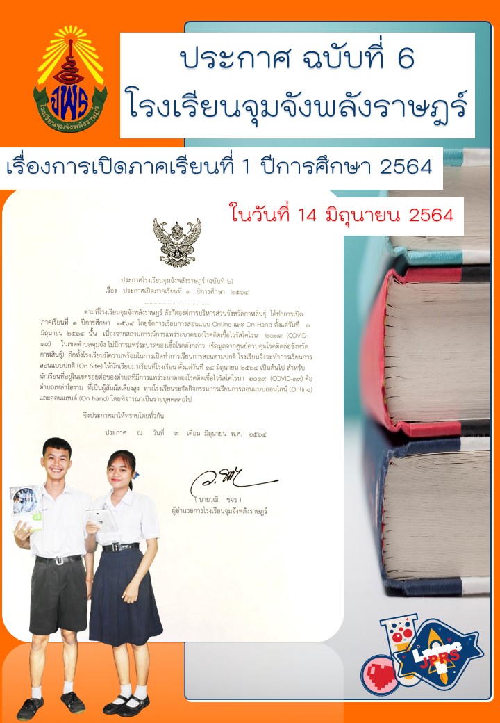 ประกาศโรงเรียนจุมจังพลังราษฎร์ ฉบับที่ 6 เรื่อง การเปิดภาคเรียนที่ 1 ปีการศึกษา 2564 วันที่ 1 มิถุนายน 2564