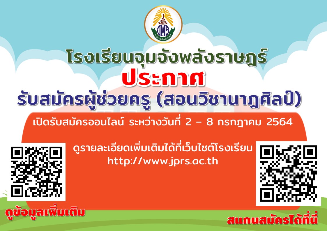 ด้วยโรงเรียนจุมจังพลังราษฎร์ มีความประสงค์ที่จะจ้างบุคคลภายนอก มาปฏิบัติหน้าที่ครูผู้สอน พนังงานจ้างตำแหน่งผู้ช่วยครู ประจำภาคเรียนที่ 1- 2 ปีการศึกษา 2564 ดังรายละเอียด ในประกาศนี้