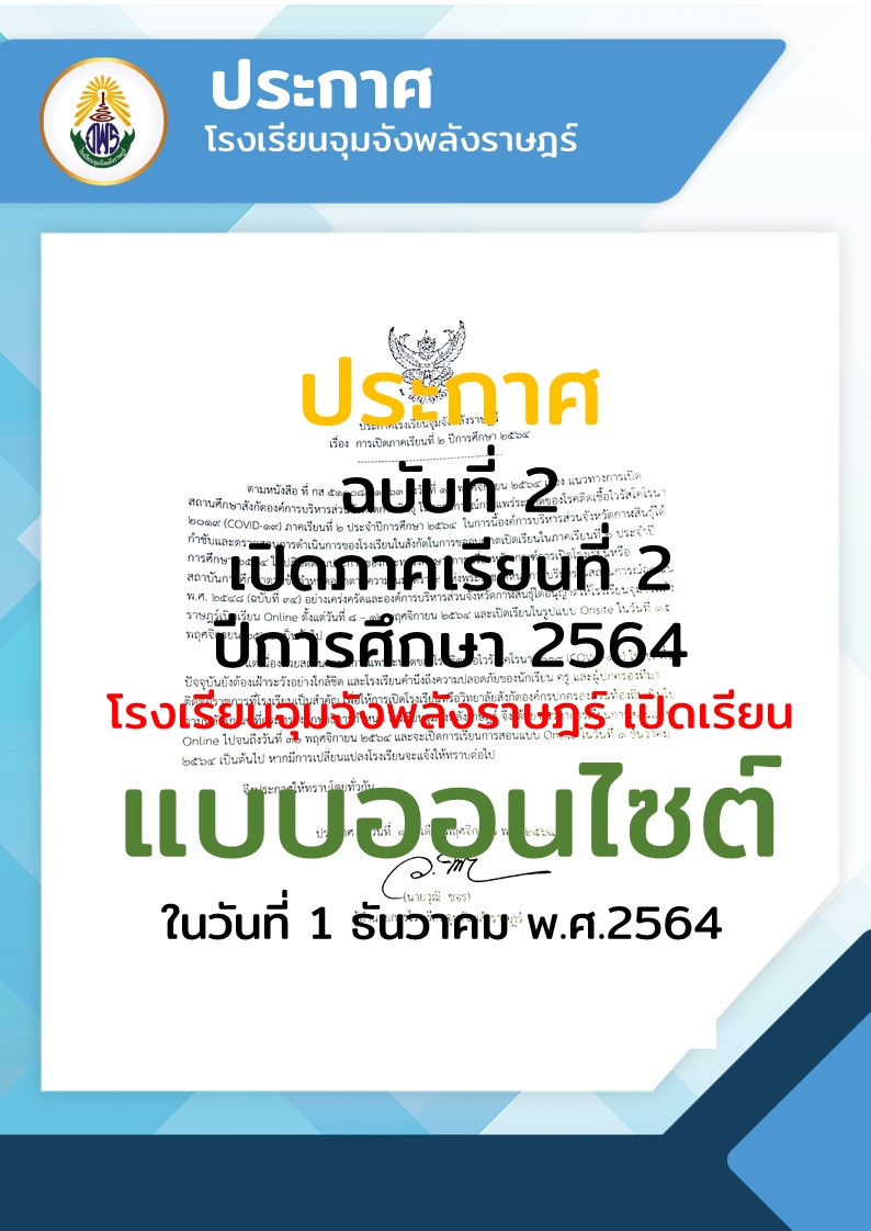 ประกาศโรงเรียนจุมจังพลังราษฎร์ เรื่อง การเปิดภาคเรียนที่ 2 ปีการศึกษา2564 (ฉบับที่ 2)