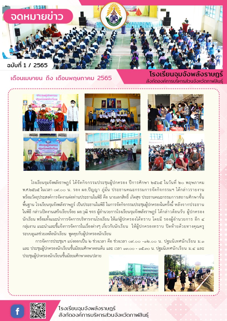 จดหมายข่าว ประชาสัมพันธ์ ฉบับที่ 1 ปีการศึกษา 2565 ช่วงเดือน เมษายน ถึง พฤษภาคม พ.ศ.2565